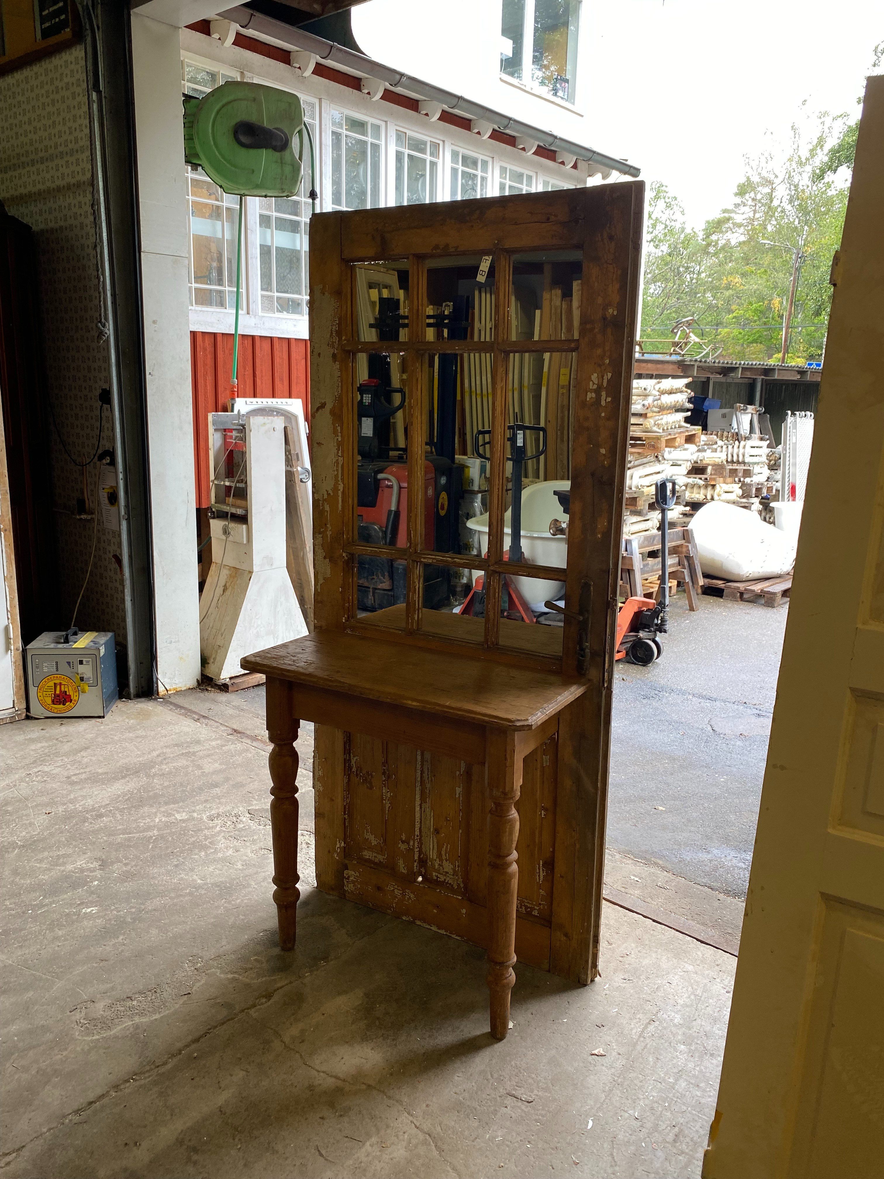 Tjusig Dörr med spegel och bord. Varför inte ha som sminkbord där spegel redan finns eller käka middag med sig själv när man känner sig ensam:)