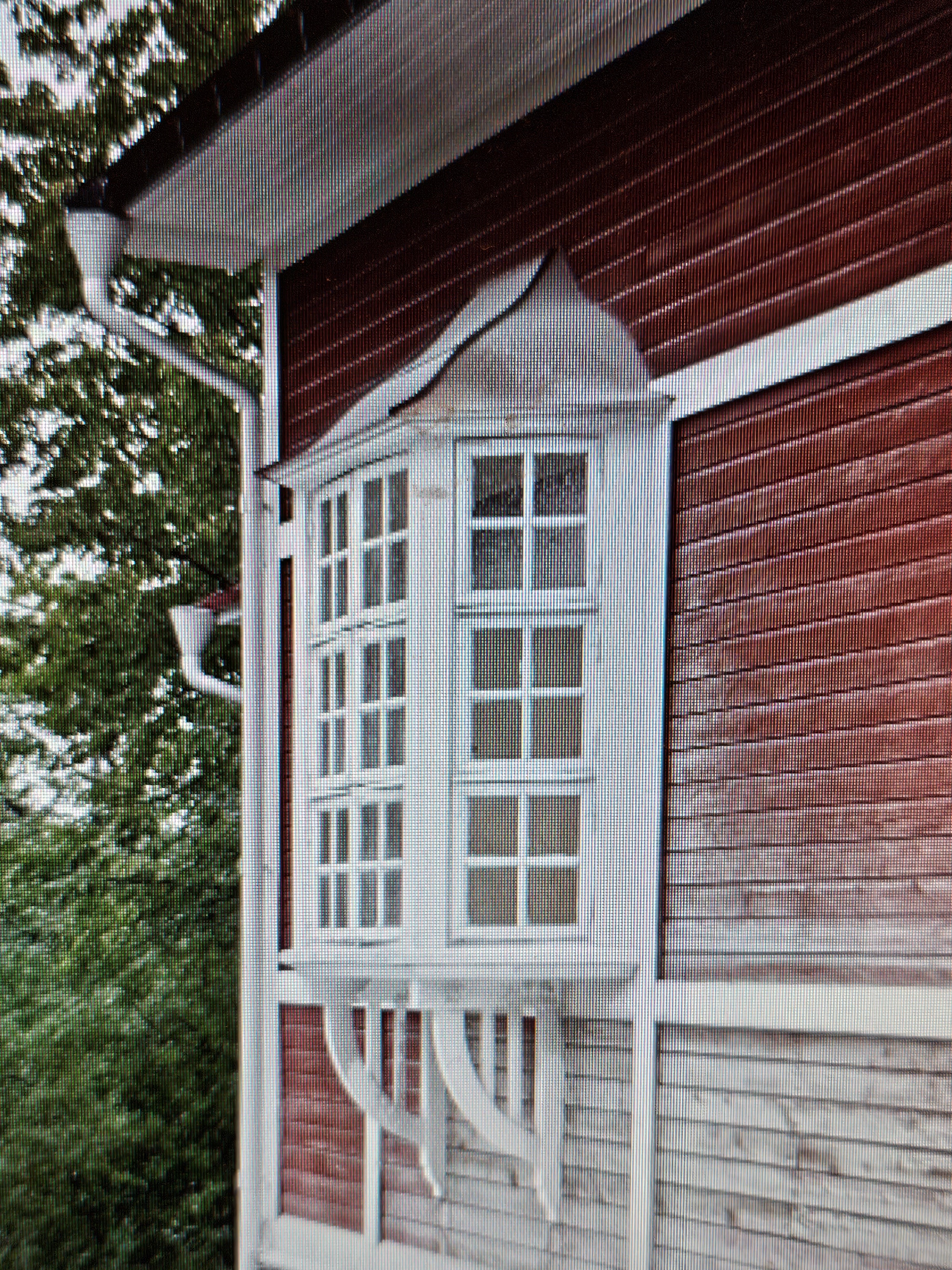 Fönster med karm och samtliga fönster är öppningsbara med lös innerbågge. Den är en del av ett burspråk från Danderyd.