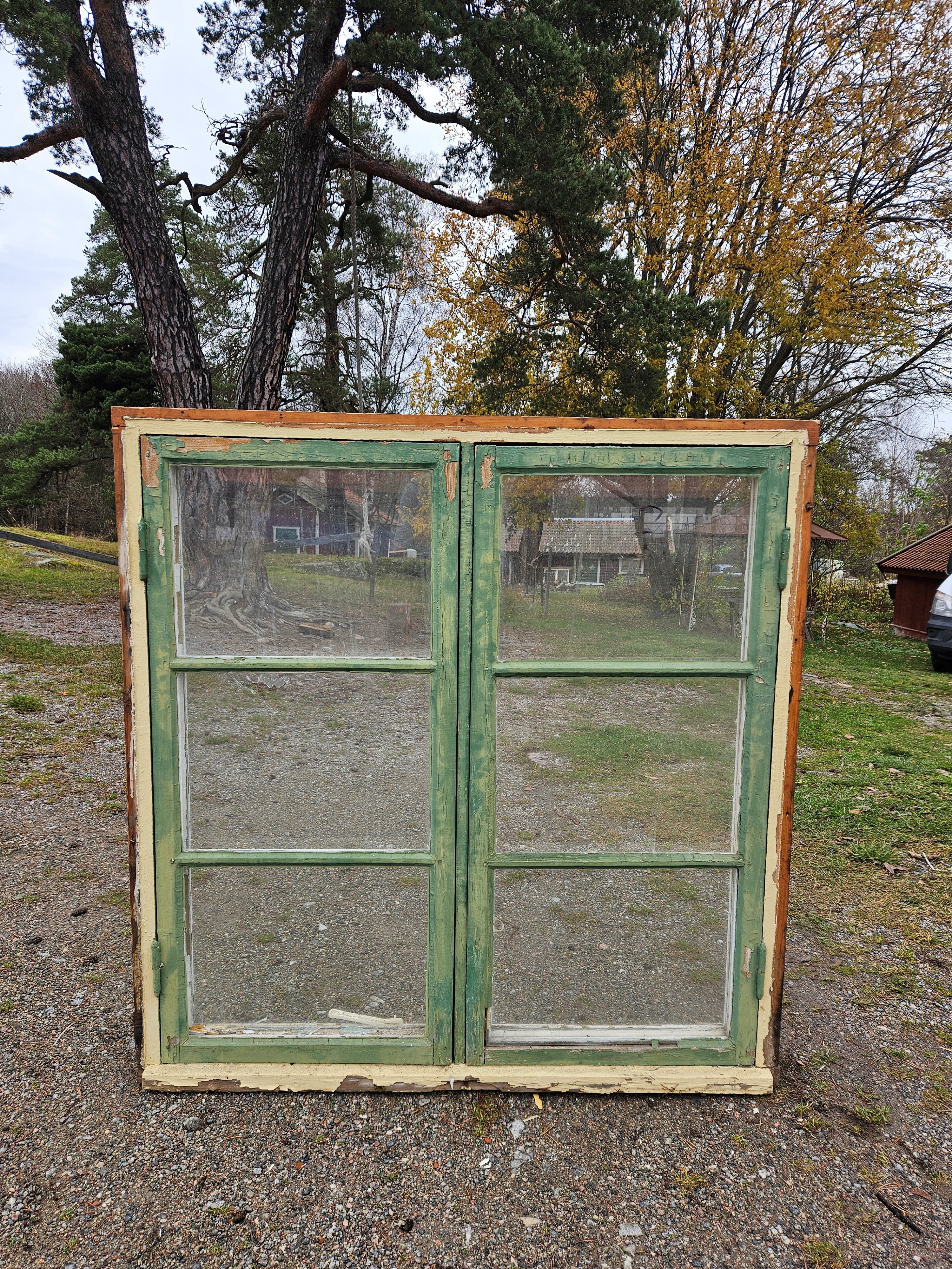 Fönster med karm och kopplade bågar med mittpost. Endast spröjs på ytre bågen.